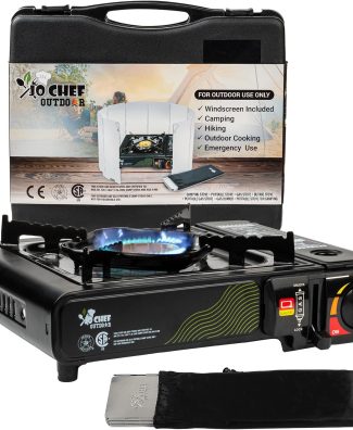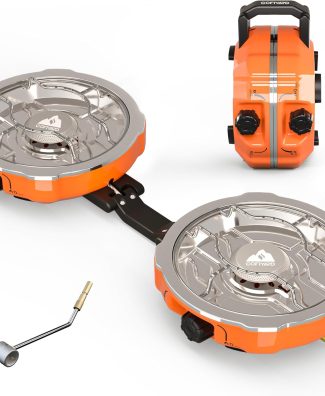 20,000 BTUs 2 Burner Propane Camping Stove, Portable Folding Camp Stove with Adjustable Burners, Regulator and Carrying Bag, Dual Gas Stoves Easy Carrying Handle for Tailgating, Camping, BBQ