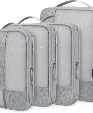 BAGSMART Compression Packing Cubes for Travel, 4 Set Travel Packing Cubes for Carry on Suitcases, Compression Travel Cubes & Suitcase Organizer for Packing with Shoe Bag Grey